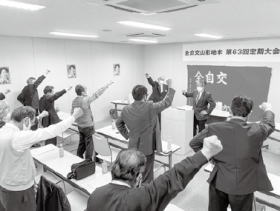 議事では、一年間の活動と決算が報告され、成田次雄書記長から新年度運動方針案、橋口学財政部長から新年度予算案が提案され、全会一致で採択されました。