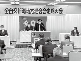 全自交新潟地連は10月29日、新潟市「じょうあす新潟会館」で「コロナ危機を団結した力で乗り越え、地域公共交通を守ろう」をスローガンに第58回定期大会を開き、新年度の運動方針と役員体制を確立しました。
