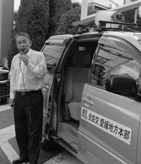 街宣車から訴える愛媛地本の宮岡委員長