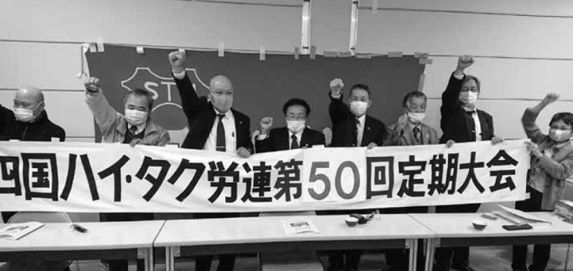 全自交四国地連(四国ハイ・タク労連)は11月1日午後から高知県桂浜荘で第4回(四国ハイタク労連第50回)定期大会を開き、活動報告と決算報告、新年度運動方針(案)と予算(案)が全会一致で承認されました。