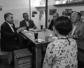愛媛県内の他の市町村議会にも広めるべく11月2日に組織拡大キャラバンを高松・丸亀市で終えた後、18時より西条市議の高橋あきのり氏と会い、事前に送付した資料と共に趣旨を説明して西条市議会での意見書採択を要請しました。