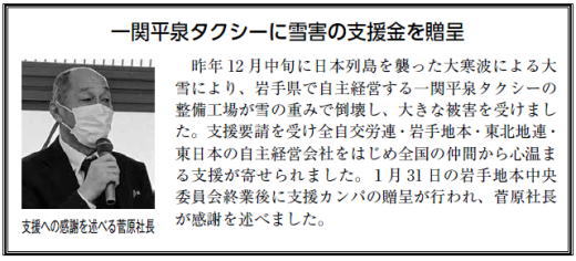 2021年はコロナの感染拡大が続き、また、大雪が相まってタクシー労働者にとって営業収入の減少で極めて困難な生活を強いられています。