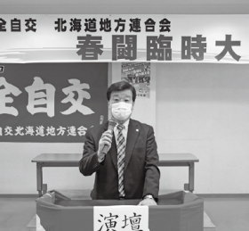 こんにちは。以前からハイタクの状況は厳しい状況にあったが、そこに新型コロナ感染症の危機が覆いかぶさってきた。一年間持ちこたえてもらい感謝する。東京・大阪などの都市部から離れるとタクシーの有難みが身に染みて感じる。皆さんの職場を守ろうとしているのは、それはタクシーが国民の生活を支えているから。国民の暮らしを守るために新型コロナの危機を力合わせて乗り越えようとしている。今日は現場の声を伝えてもらいたい。