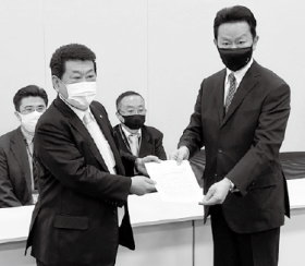 要請書を手交する伊藤実代表(左)