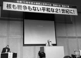 ④核兵器廃絶のために積極的に行動し、核兵器禁止条約の早期批准をめざすとともに、すべての被爆者が救済対象になるよう求めます。