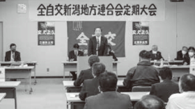 全自交新潟地連(中川義昭委員長)は10月27日、新潟市の勤労福祉会館で、第59回定期大会を開き、新年度の運動方針案と予算案を決定。役員改選では中川委員長や海藤書記長ら全役員が再任されています。質疑では最低賃金不払いへの対応や、雇用調整助成金終了後の対応、A型賃金の意義、どう労働組合の必要性を伝えていくか、新潟地連でも個人加入の制度を、など真剣な質問が相次ぎ、活発な討論が行われました。