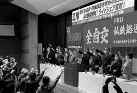 溝上泰央中央執行委員長を先頭に、全自交は