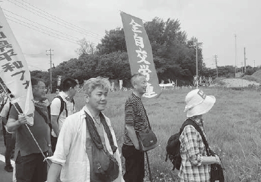 全自交の旗を掲げ、平和を願い20㎞ を行進しました。
