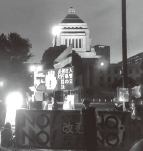 全自交労連本部は6月7日、国会前で入管法改悪に抗議する集会に参加。