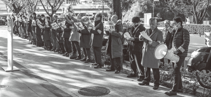 12月8日、デジタル庁の前で全自交労連が行ったライドシェアに反対する街宣行動。