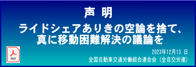 ① ライドシェア阻止に向け、労使一体で取り組むことを求めます。