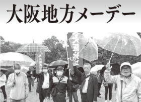 5月1日、大阪城公園で開催された第95回大阪地方メーデーには雨の中、約2万人が集まり、全自交大阪地連からは全相互タクシー労組、大阪トンボ交通労組、新大阪タクシー労組、全自交珊瑚自動車労組の12人が参加しました。