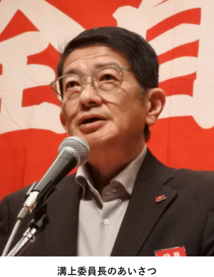 溝上泰央・中央執行委員長はライドシェア完全解禁によってハイタク産業は2002年の規制緩和を上回る崩壊の危機にさらされるとし、「我々が支持する立憲民主党による政権交代、これを実現することが、崩壊を阻止する最大の防護策である」と訴えました。