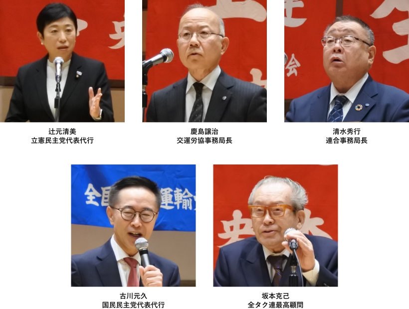 「今年はライドシェア問題にピリオドを打つ年にしなくてはならない。なにが国民生活に大事なのか、それを知らしめる闘いだ。国会の場でライドシェア問題に決着をつける」と決意を述べました。
