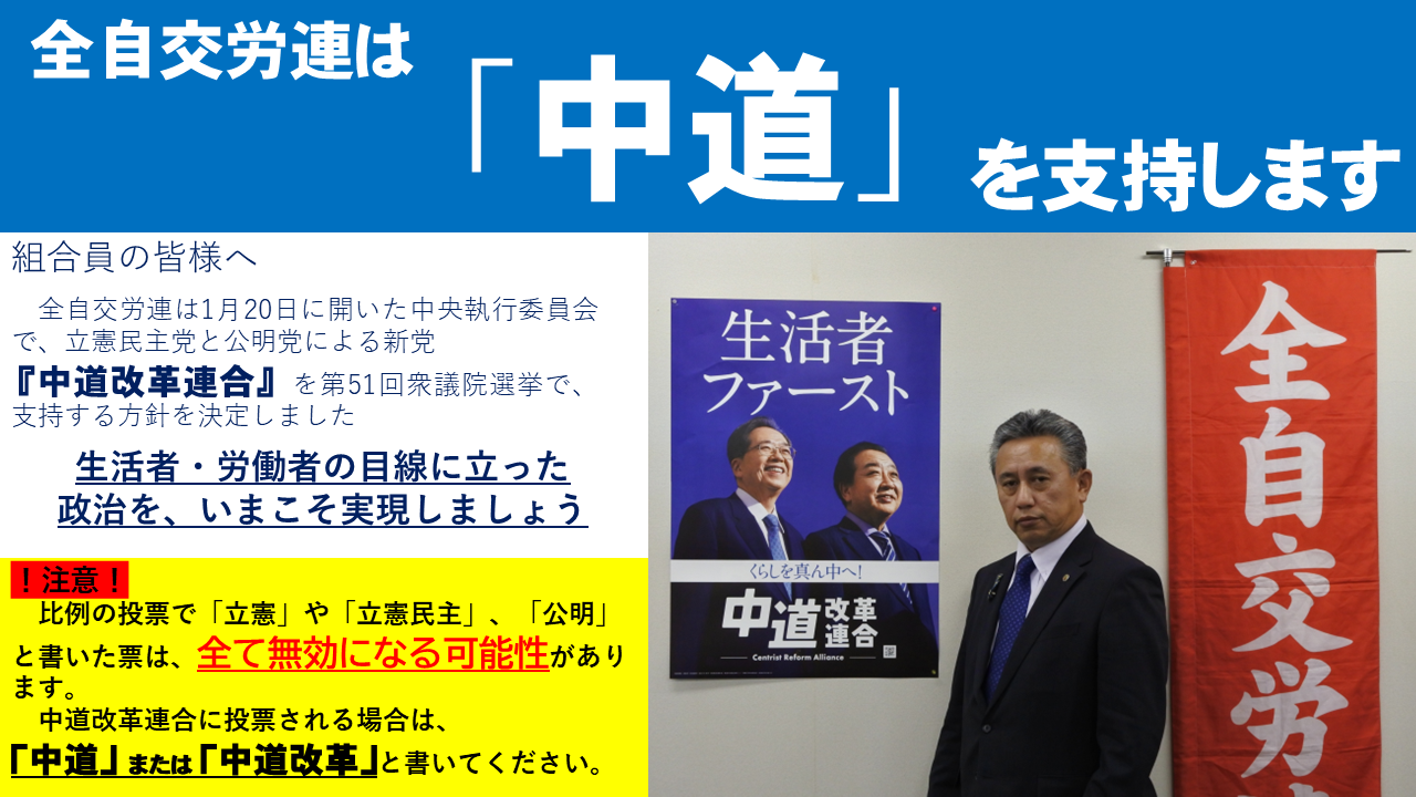 ■ 全自交東京地連 東京都知事選挙で蓮舫氏を推薦