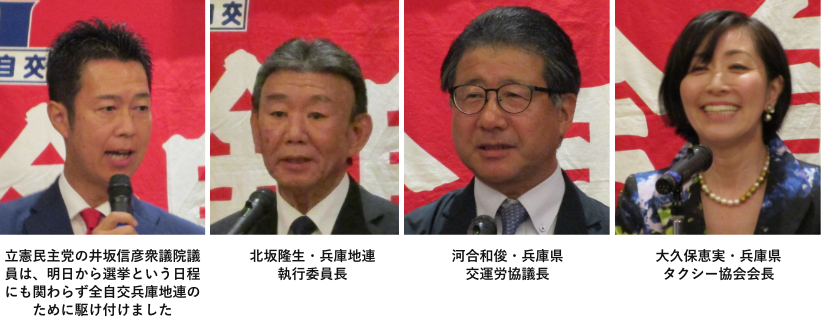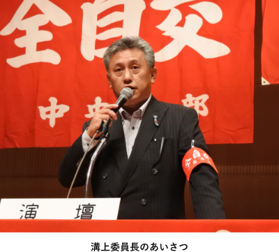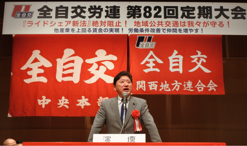 溝上泰央・中央執行委員長はライドシェア完全解禁によってハイタク産業は2002年の規制緩和を上回る崩壊の危機にさらされるとし、「我々が支持する立憲民主党による政権交代、これを実現することが、崩壊を阻止する最大の防護策である」と訴えました。