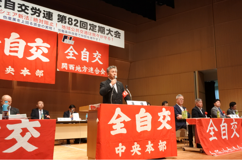 全自交労連は10月15、16日の両日、神戸産業振興センター・ハーバーホールにて第82回定期大会を開催し全国から200人以上が集結。ライドシェア新法阻止、他産業を上回る賃金の実現でハイタク・自教で働く仲間を増やすことを柱とする新たな運動方針を確立しました。
