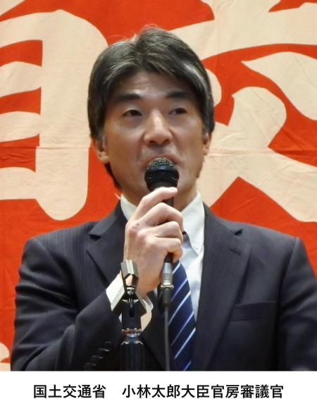 中央委員36名、役員31名、傍聴51名が出席。議長は東京地連の林三樹郎中央委員が務め、国土交通省の小林太郎大臣官房審議官の講演も行われました。