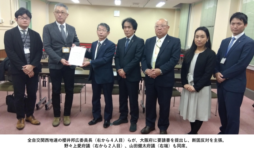 全自交関西地方連合会と交通労連関西地方総支部ハイタク部会、私鉄関西ハイタク労働組合連合会の3団体は2月14日、大阪府への要請を行い、根拠なき24時間運行に抗議し、「ライドシェアの全面解禁につながる」として即時見直しを求めました。万博終了後も理由をこじつけ24時間運行を継続する懸念に対し、大阪府の担当者は「万博後は白紙」としか回答せず、我々の疑念は解消されませんでした。