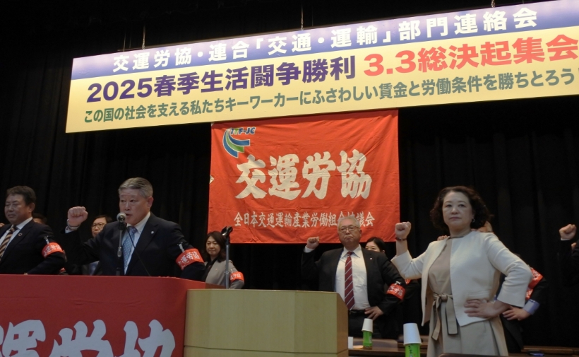 交通運輸・観光・サービス産業の労働者60万人が集う交運労協は、3月3日、都内で春闘総決起集会を開催。